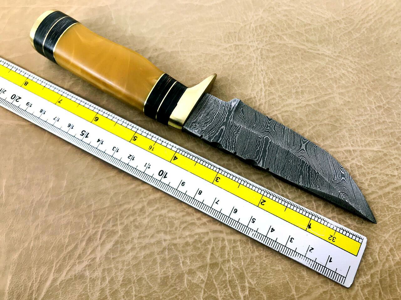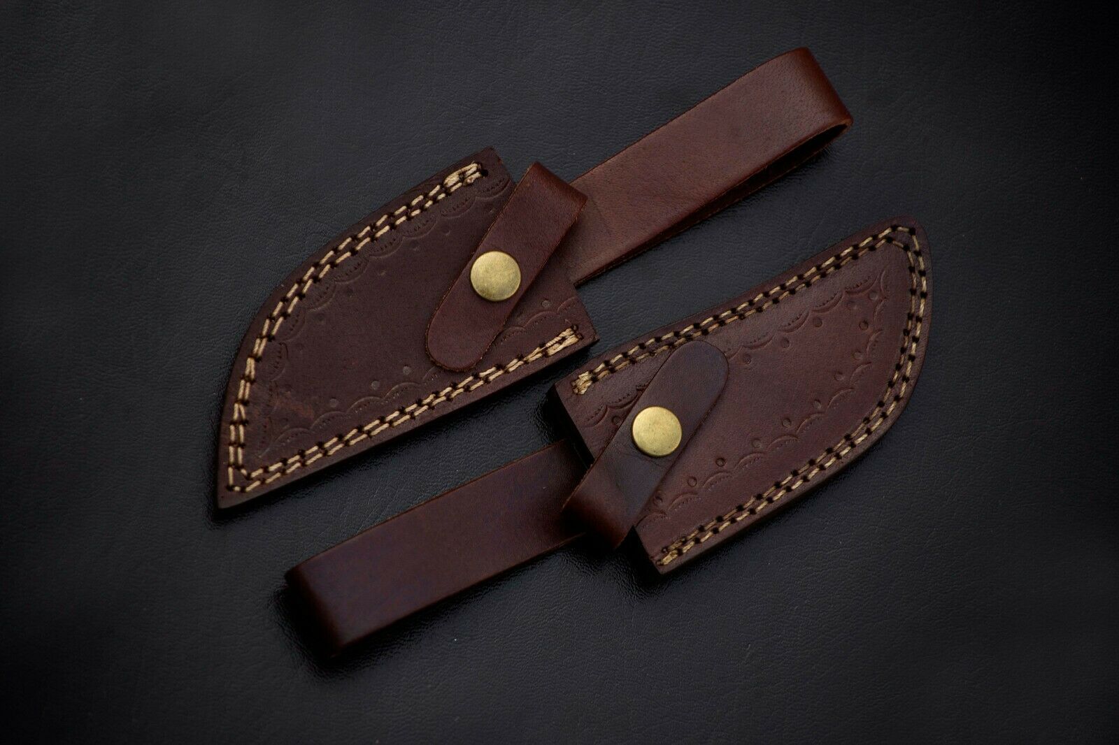 Never store your knife for long time in leather sheath. Leather can absorb water which will rust the knife. Always clean the blade after using and apply oil or wax (please use cooking oil on Chef Knife) before you store it, for its longer life and durability – Damascus steel knives